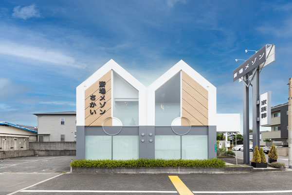 家族葬に特化し、1日1組貸切。風呂、シャワー、食事室、遺族控室なども完備され、宿泊や仮眠も可能。平屋のバリアフリー設計。