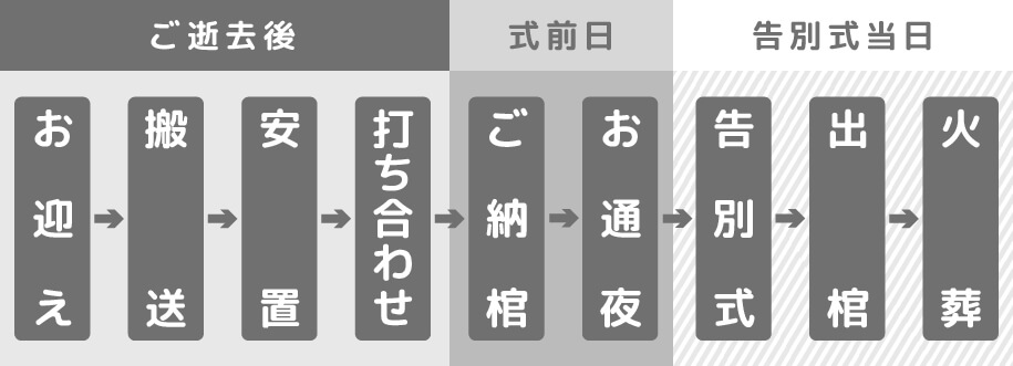 - 火葬場の予約状況によっては火葬まで日数がかかることもある